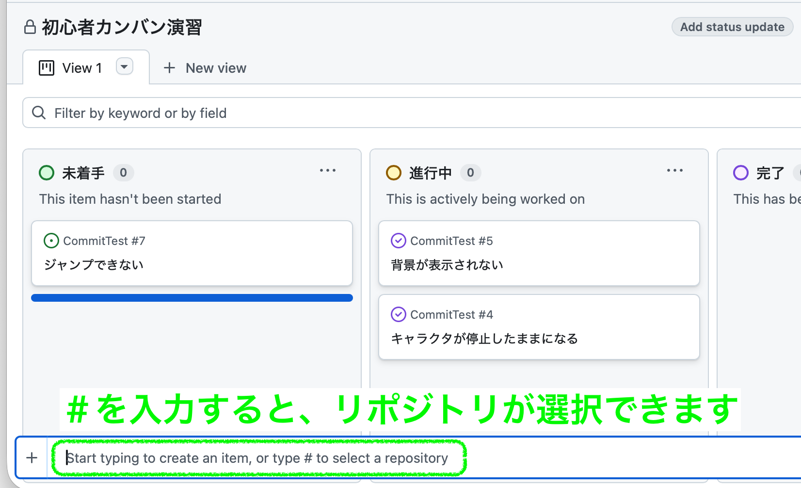 - 新規 Issue 作成時に自動で「未着手」へ登録