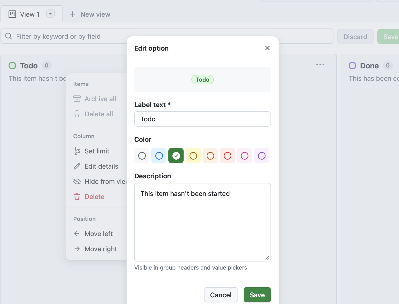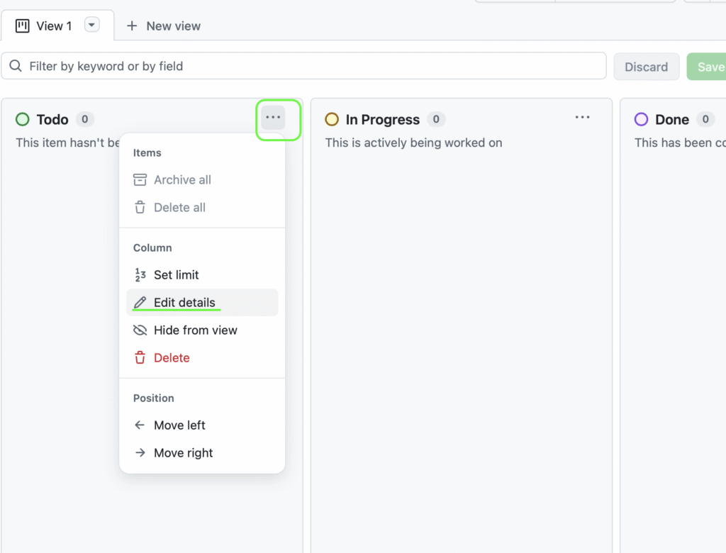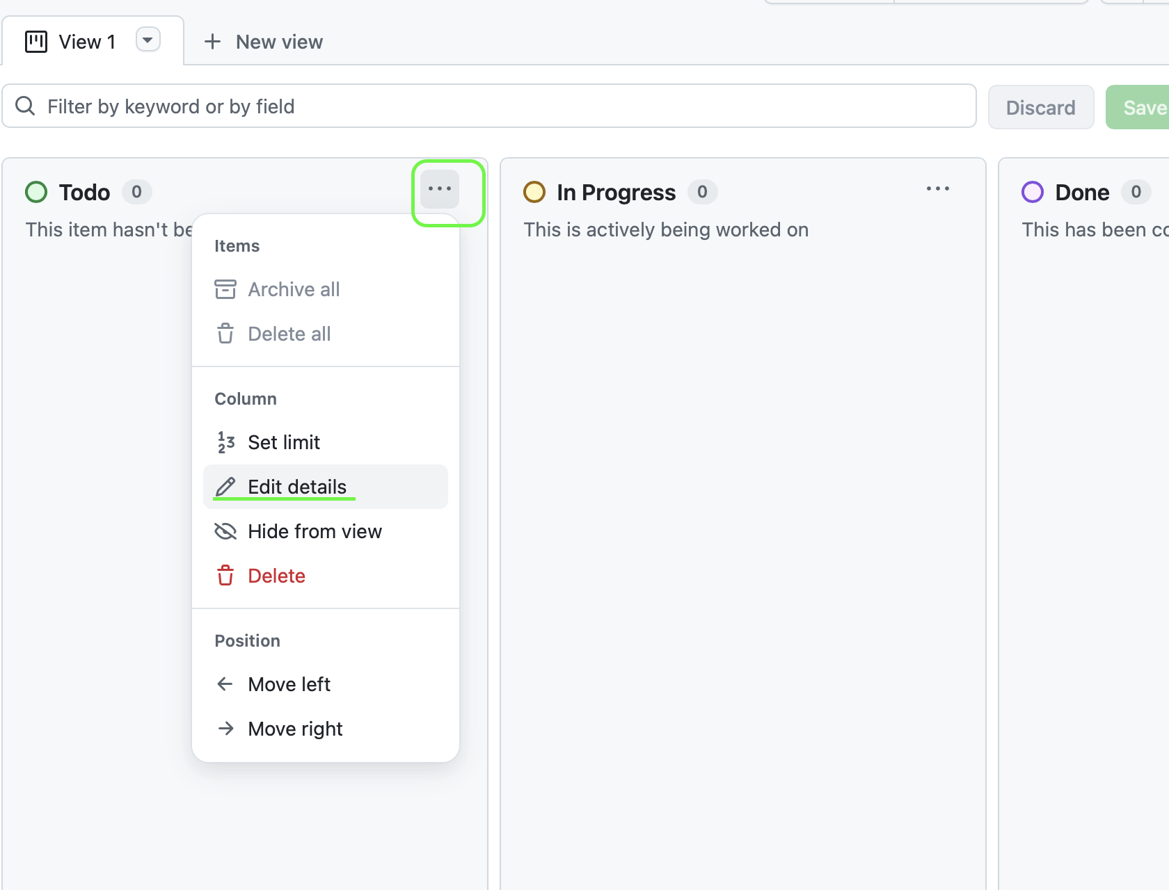 - 各列ヘッダー右の「…」→ Edit column を選択し、名称を上記日本語に変更して Save