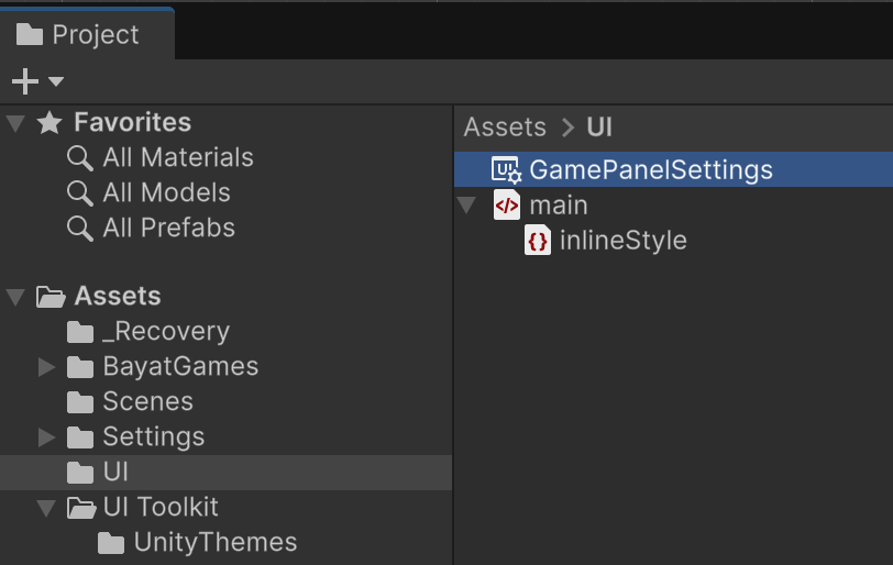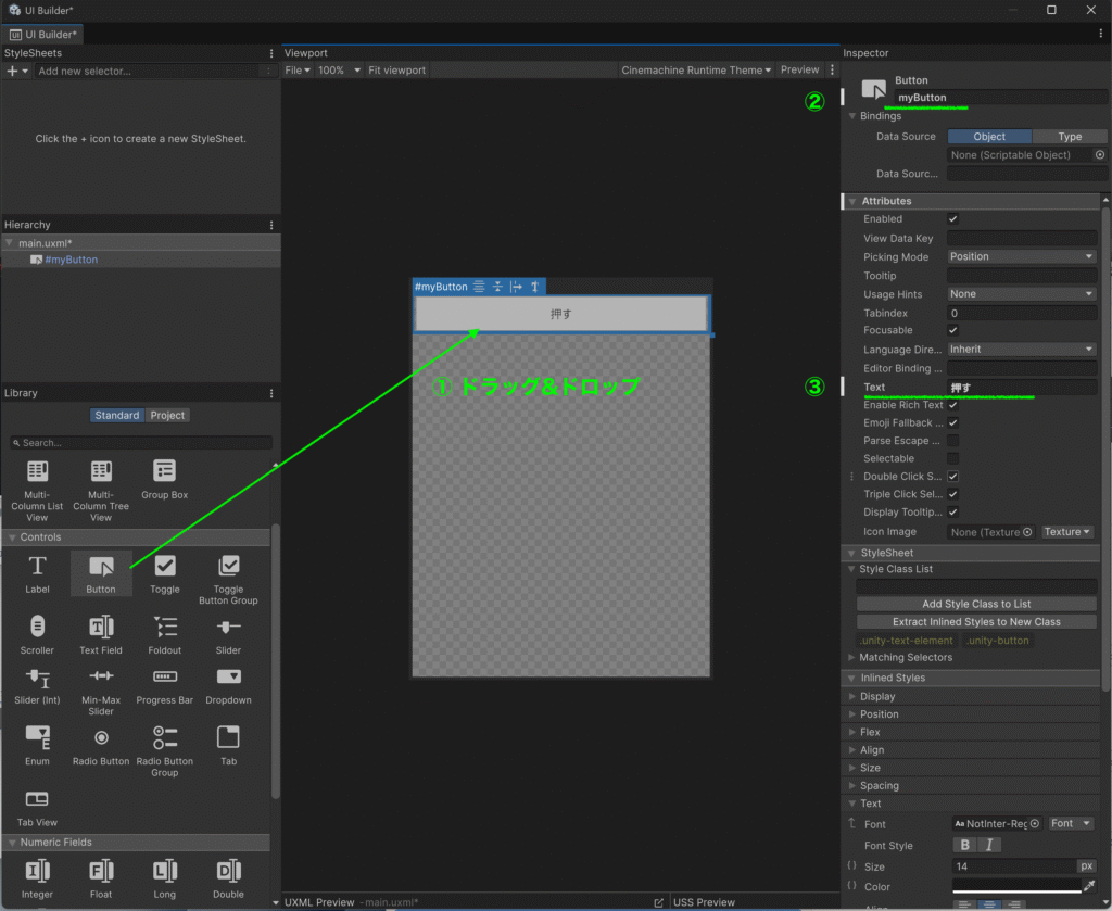 └─ main.uss(スタイル定義) *今回はインライン仕様なのでありません