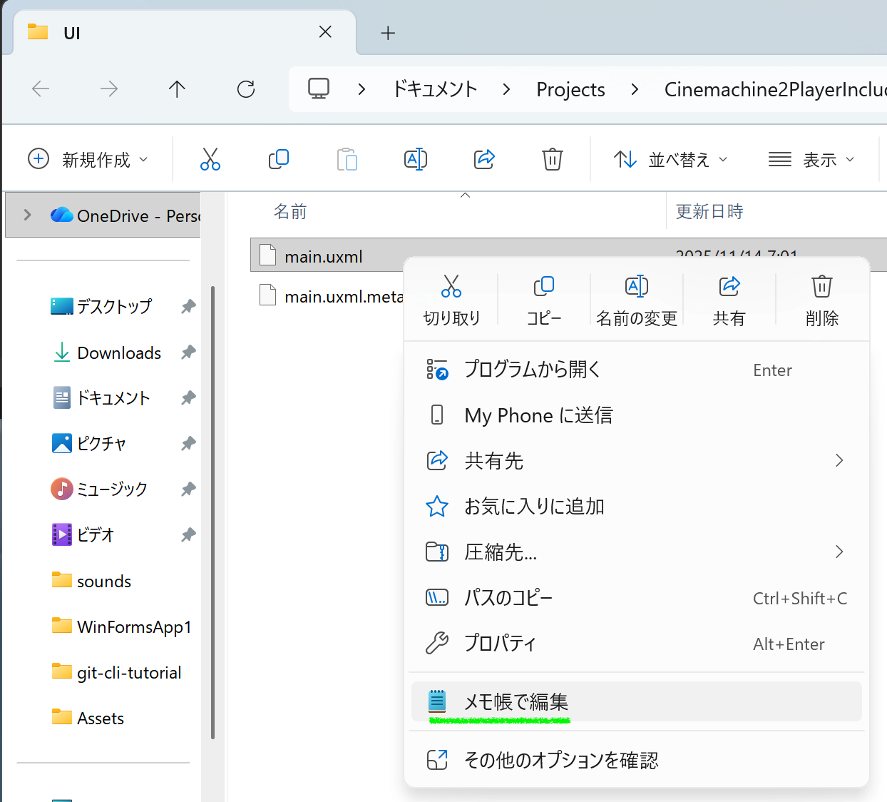 UI は UXML/USS で管理され、動作は C# が担当するという完全な分離構造です。