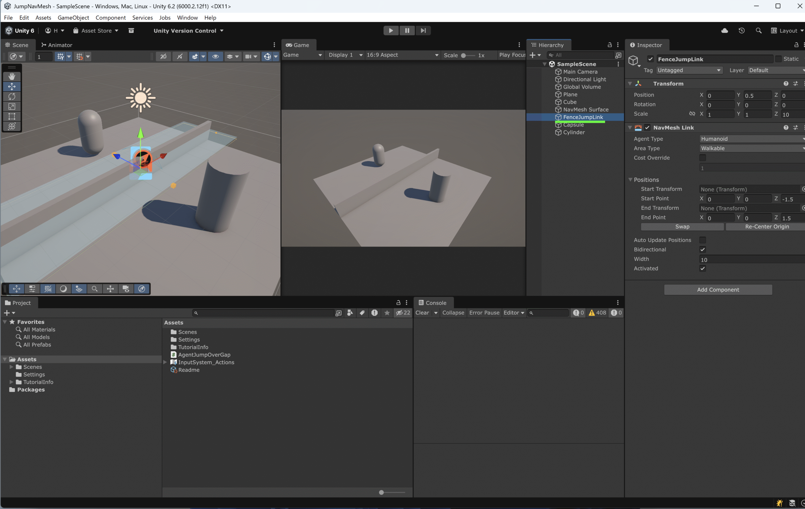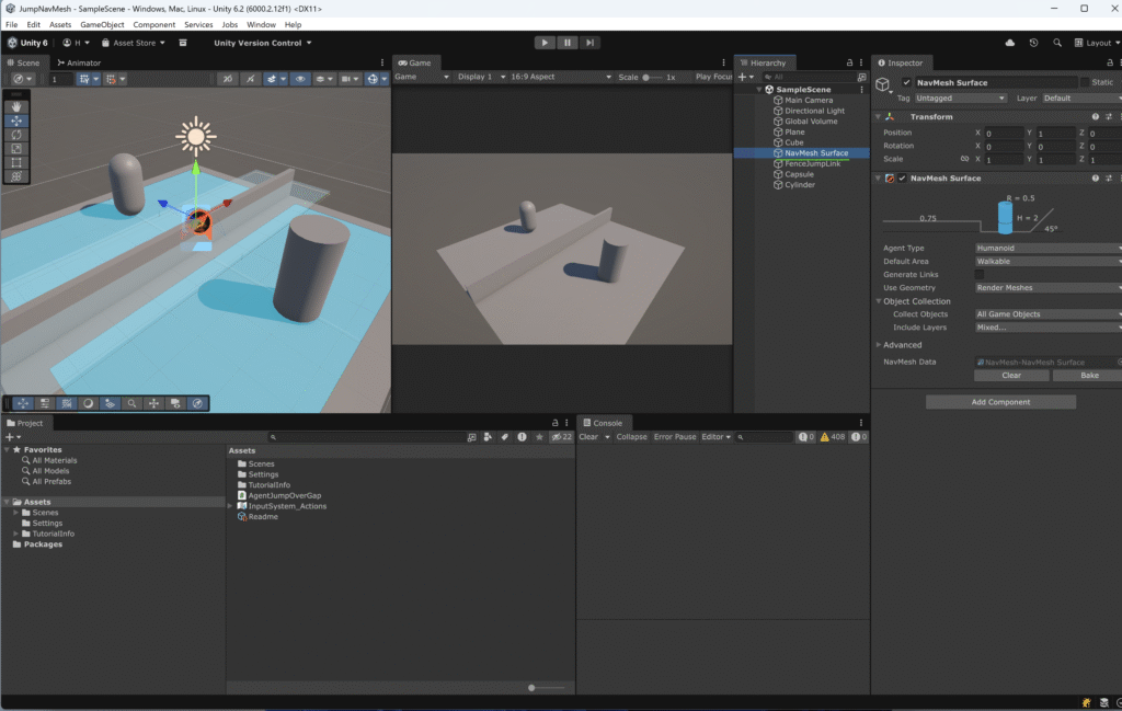 このチュートリアルでは NavMeshLink を使い、「柵のどの位置からでも飛び越えられる追跡AI」を Unity 6 環境で実装する方法を解説します。