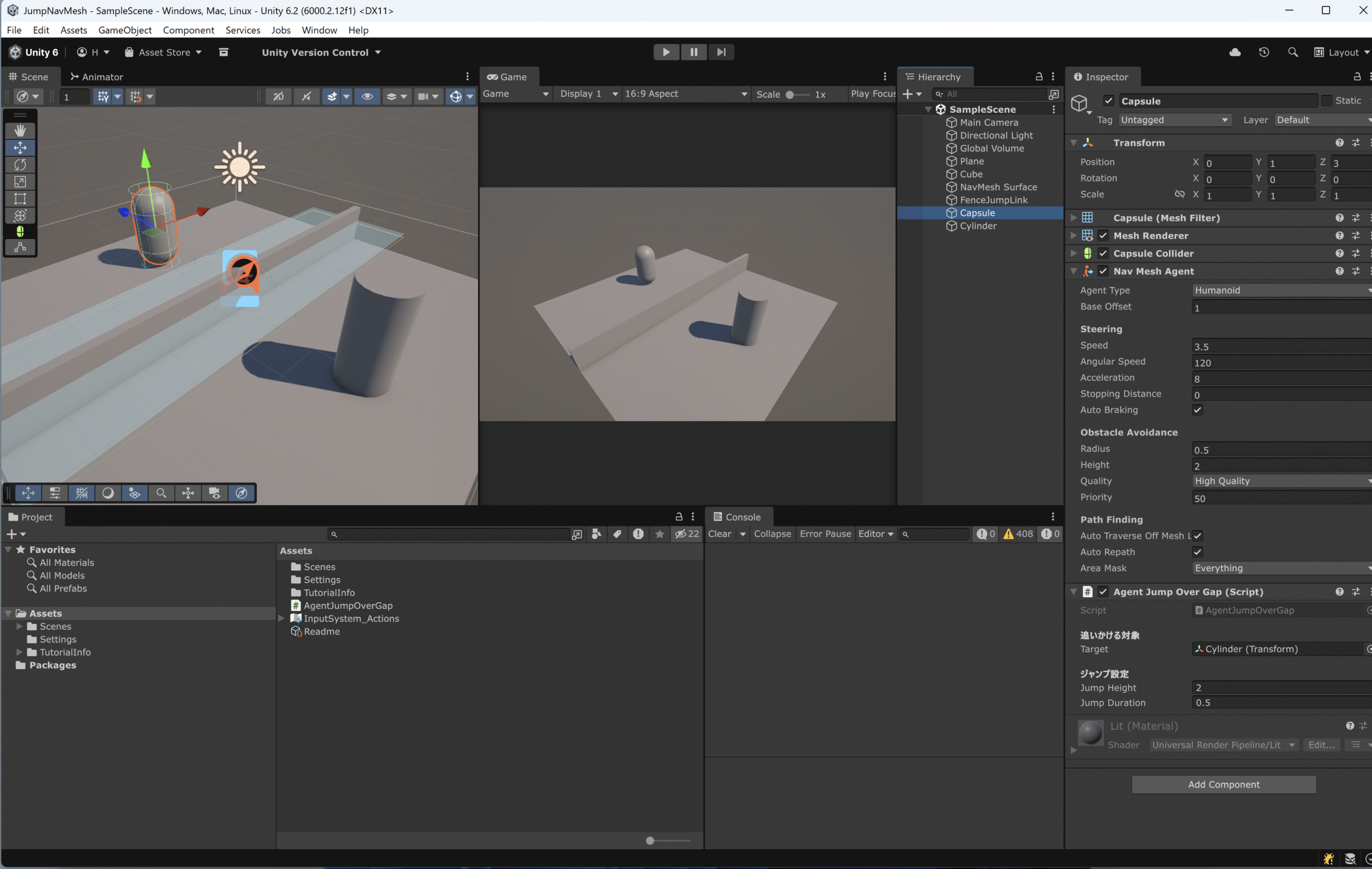【Unity 6】NavMesh エージェントに柵を飛び越えさせる