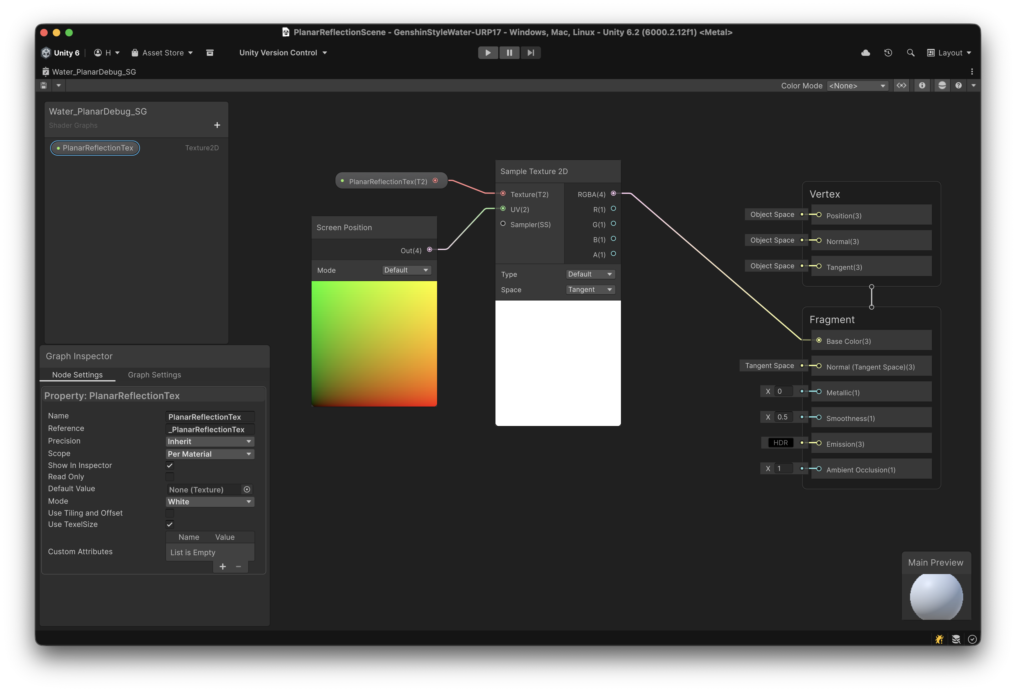 Unity 6(URP 17)で作る Planar Reflection 水面