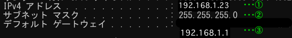 IPv4 アドレス . . . . . . . . . . : 192.168.1.23