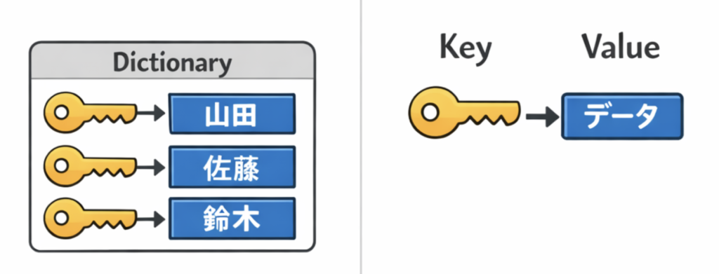 | Dictionary | キー | 紐づけ管理 |