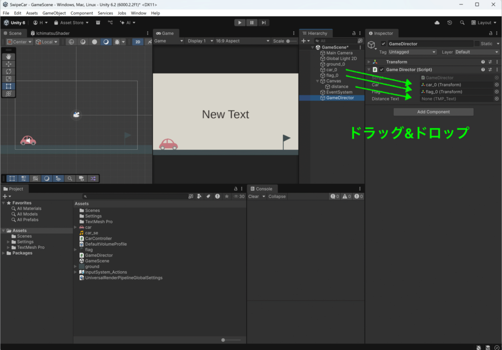 1. シーン構成と Inspector:GameDirector と car_0